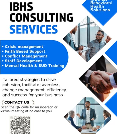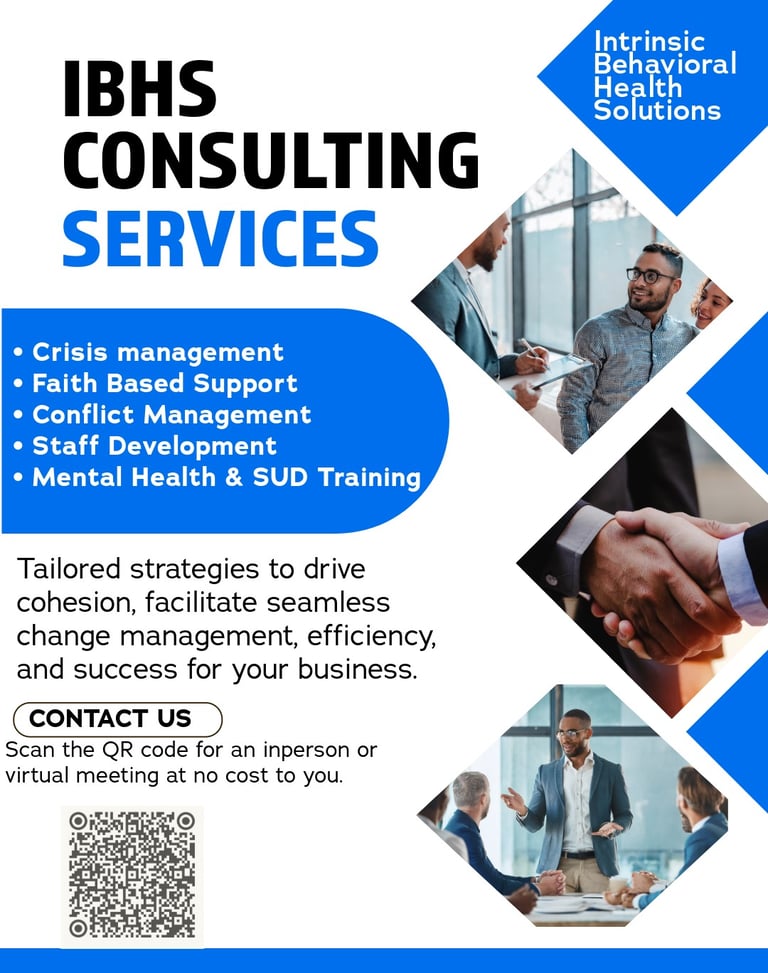 At Intrinsic Behavioral Health Solutions, we empower individuals and organizations with transformative behavioral health support, integrating faith based values, our wellness values. We provide proactive care for lasting change. Please click on the IBHS Consultant Form below or scan the QR code on the flyer to your right to let us know how we can best meet your needs.